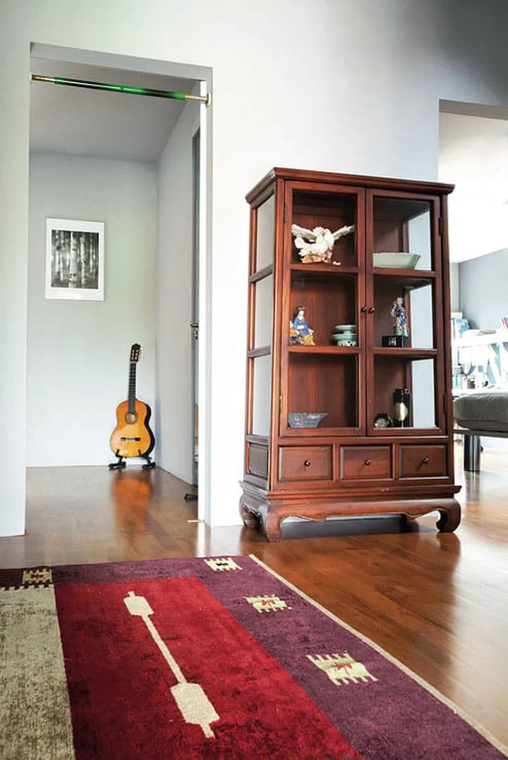 Asian pieces add local flair to the mid-century modern look set by the Eames lounge chair and Scandi-style sofa from Lorgan's The Retro Store.