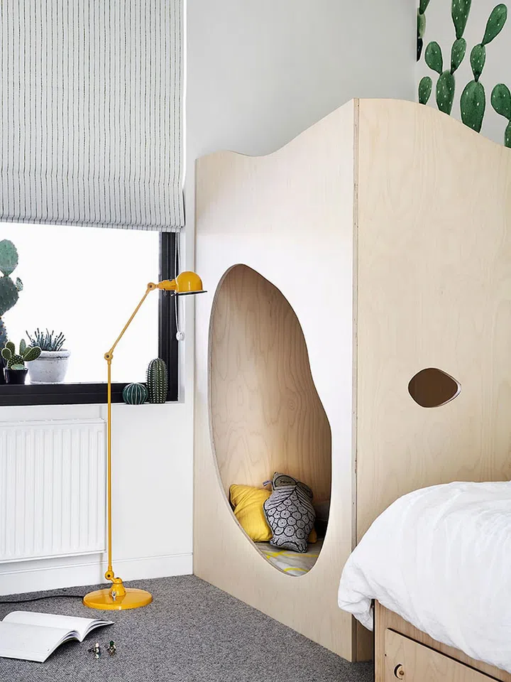 This cocoon will make your kid feel safe and cosy. We love the pops of yellow in this neutral-hued room.