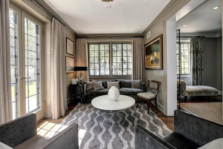 Inside, the home has a clean, traditional aesthetic - similar to that of the White House. The living room has been described in news reports as "stately" and "generous", while the kitchen features marble countertops and white cabinets as well as a hardwood floor.
