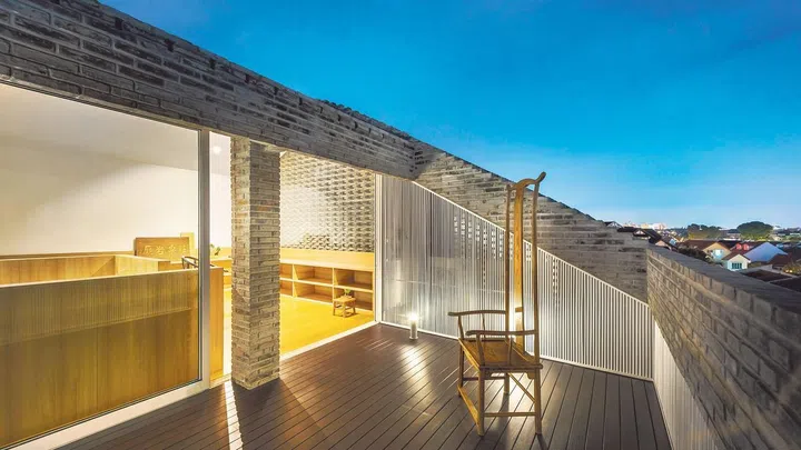 To give the home a coherent look, Mr Cheok cladded the facade in bricks. Not ordinary bricks, but 100-year-old clay bricks reclaimed from demolished villages in Northern China, which were shipped to Singapore.