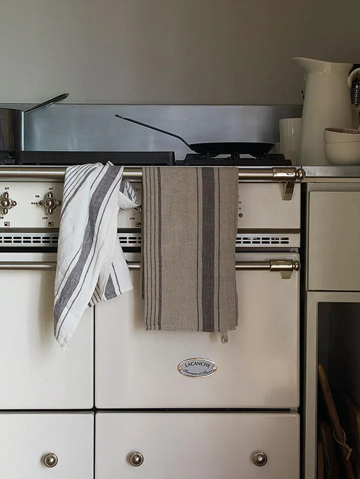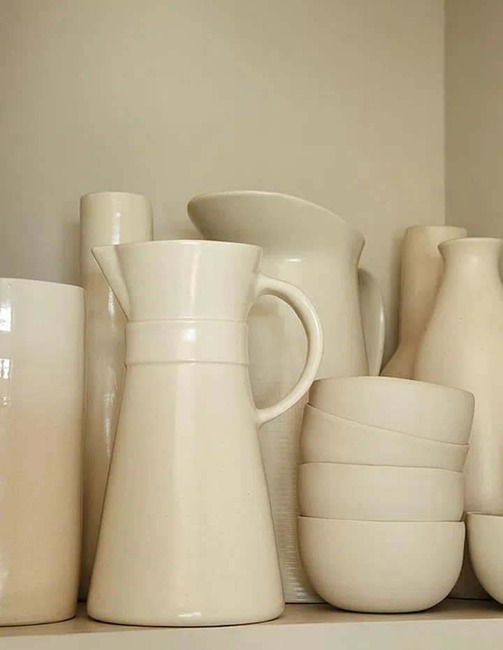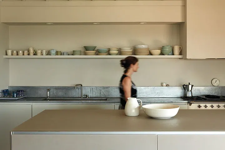 A range of pale ceramics and dinnerware fit perfectly into the natural colour tones and textures of the kitchen.