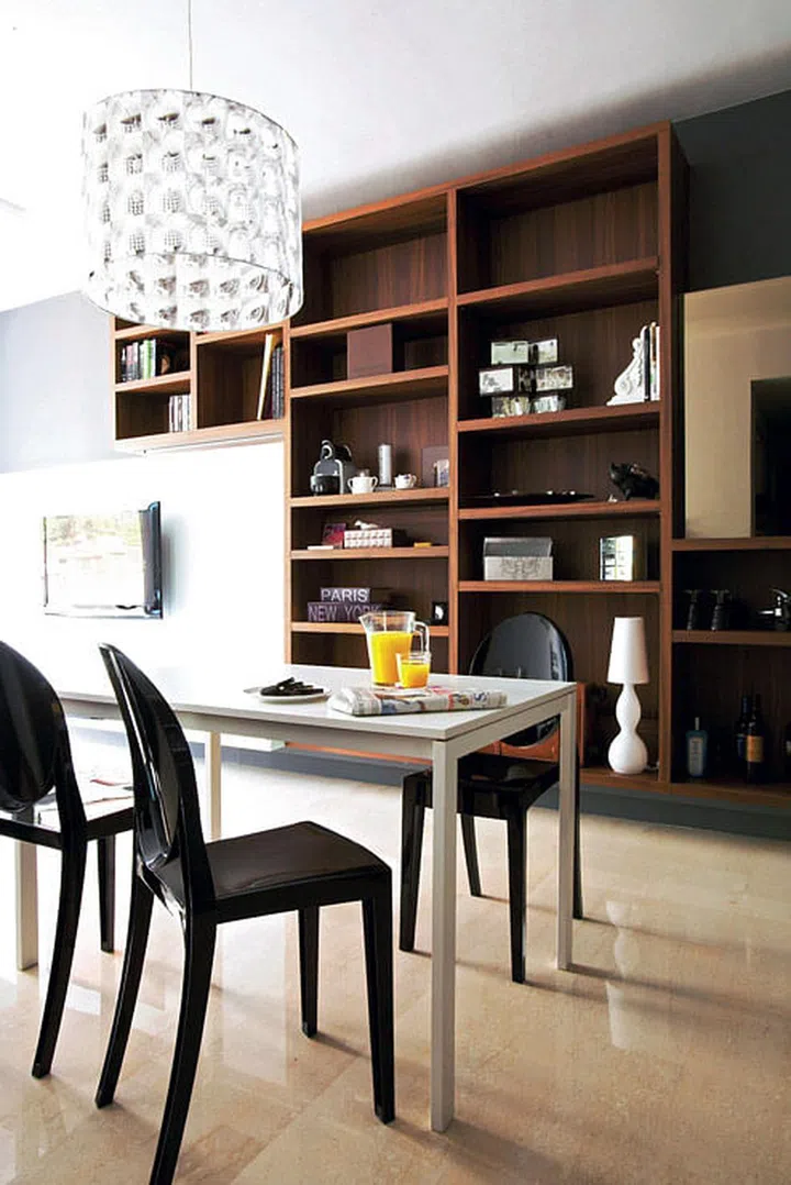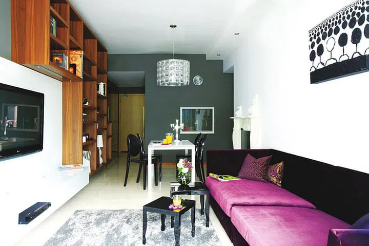 Romantic decor details are given a contemporary edge in this two-bedroom condominium apartment in East Coast. They worked with Dwell ID to get the sleek, modernised Baroque look with an edgy, rock-star vibe which they wanted.