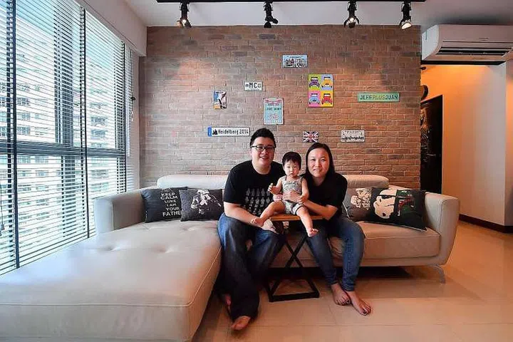 Now the living room is where they spend most of their time as a family, hanging out on the L-shaped sofa. "We like to watch movies and cartoons with Aletheia in the evenings or during the weekends," Ms Tian says.