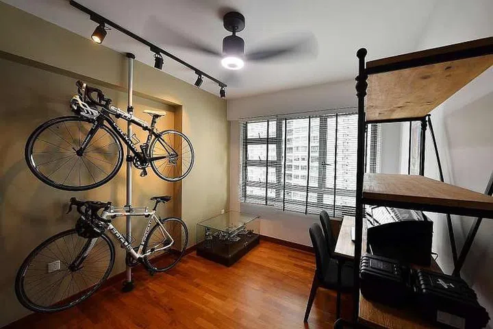 The couple have also added their own touches to their home. In the study, they installed a bicycle stand, which they bought from online shopping website Taobao. Ms Tan says they were avid cyclists before their daughter came along.