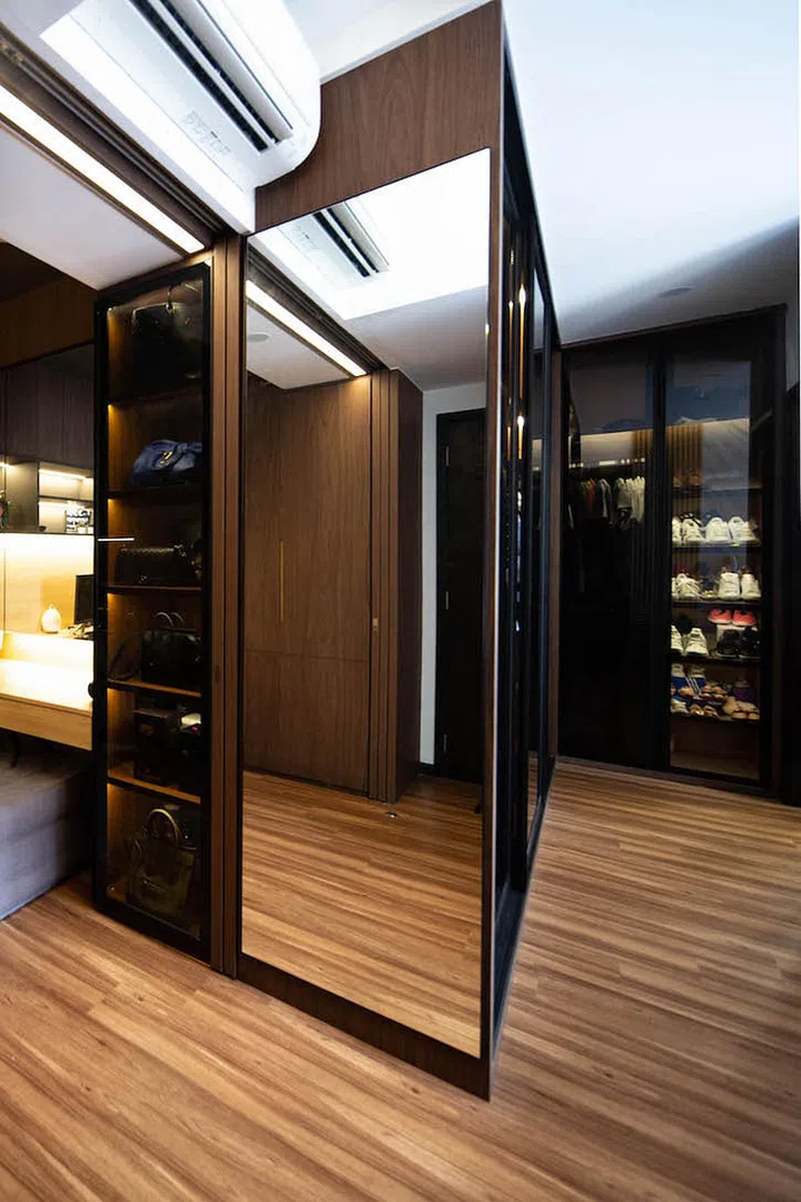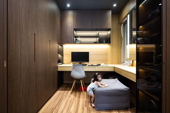 Jun Kai wanted a study where he could work on his computer without disturbing his wife’s rest, and Samantha wanted a sizeable wardrobe with display cabinets fitted in.