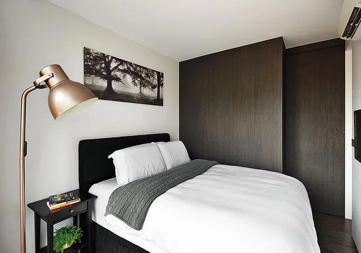 Darker furniture colours were chosen for the bedroom to create a relaxing ambience.