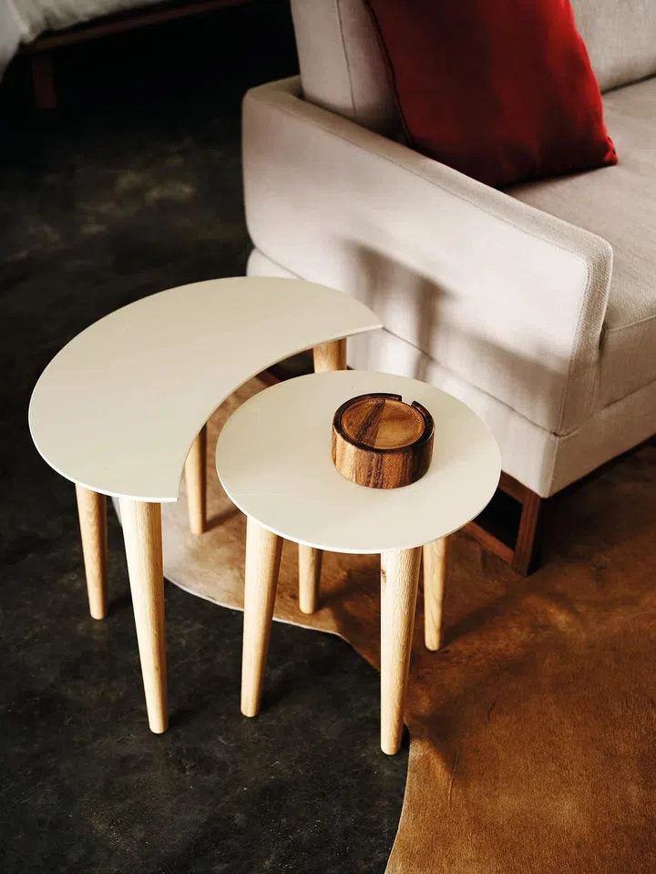 As an ex-air steward, the owner did plenty of shopping overseas during his career traversing the world’s most design-forward cities. This nest of tables was bought in the US during one such adventure—not as a souvenir but as a thoughtfully considered addition to his eventual home.