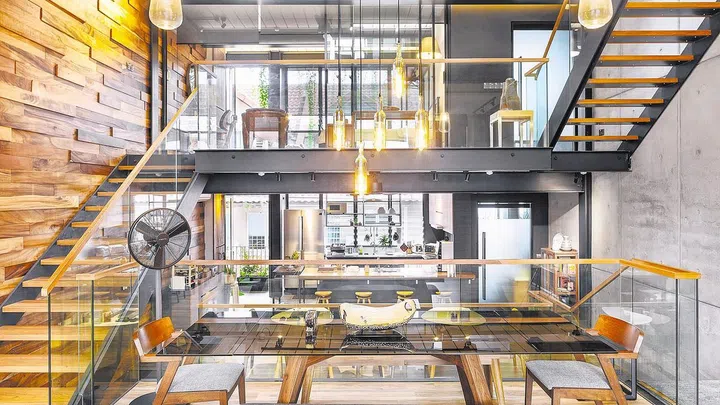 To avoid the usual narrowness of such houses, Mr Chan had some design tricks up his sleeve. One obstacle is the conventional single staircase that connects all the floors but cuts into the width of the house and results in wasted landing space. Instead, Mr Chan designed single-flight stairs to transverse split level floors. The house instantly looks and feels wider. Going up shorter flights of stairs is also less arduous than a long single one.