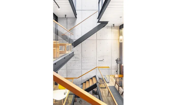 The home, designed in association with MKJY Architects, is conceived like a live-work studio.