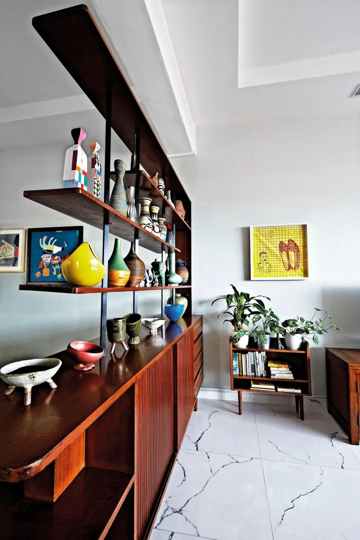 House Tour: Teak furniture heirlooms, modern art and pottery set the scene in this cosy apartment
