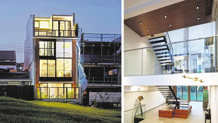 The double volume dining and living areas allow for bigger and more windows, which instantly draw light into the otherwise dim space that terrace houses are notorious for.