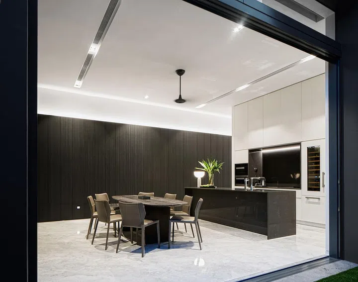 To add warmth to the spacious home, the design team also utilised a black and white colour theme.
