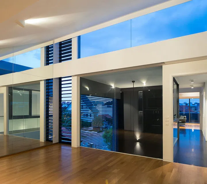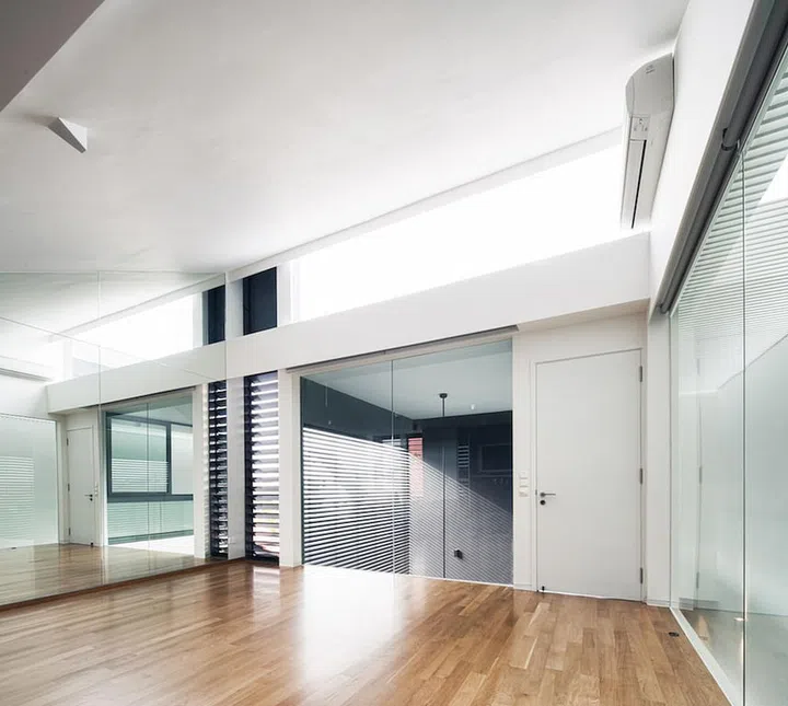 Thanks to the unique fragmentation of the spaces, there are plenty of window openings allowing natural light to stream in during the day and glimpses of the sky in the evenings.