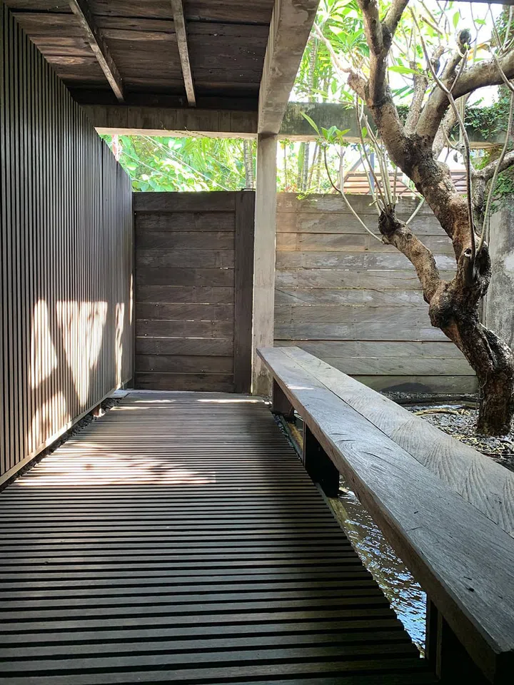 After a long period of patient search (hence the six years construction time) he managed to source 60% of it from dismantled docks in Bali, working around the scarcity of the material and contributing to the environment in one stroke.