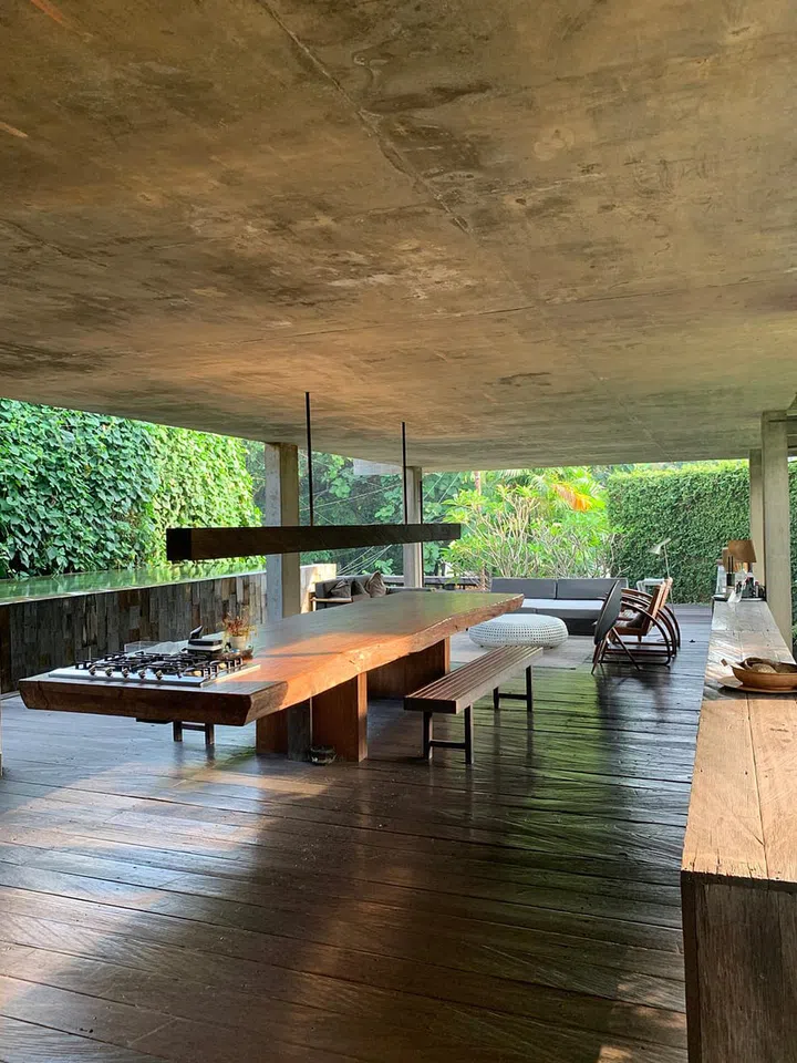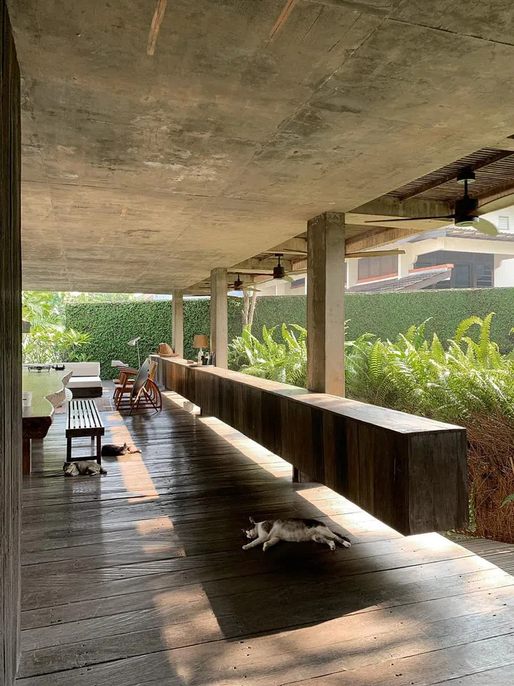 "One of the joys of being in the tropical climate is the indoor-outdoor connection. It's either a sunny day or a rainy or something in between. You can live with a bit of sun and rain, so can ironwood and concrete," Andra says when asked if he's not afraid of the wear and tear of having everything exposed to the elements.