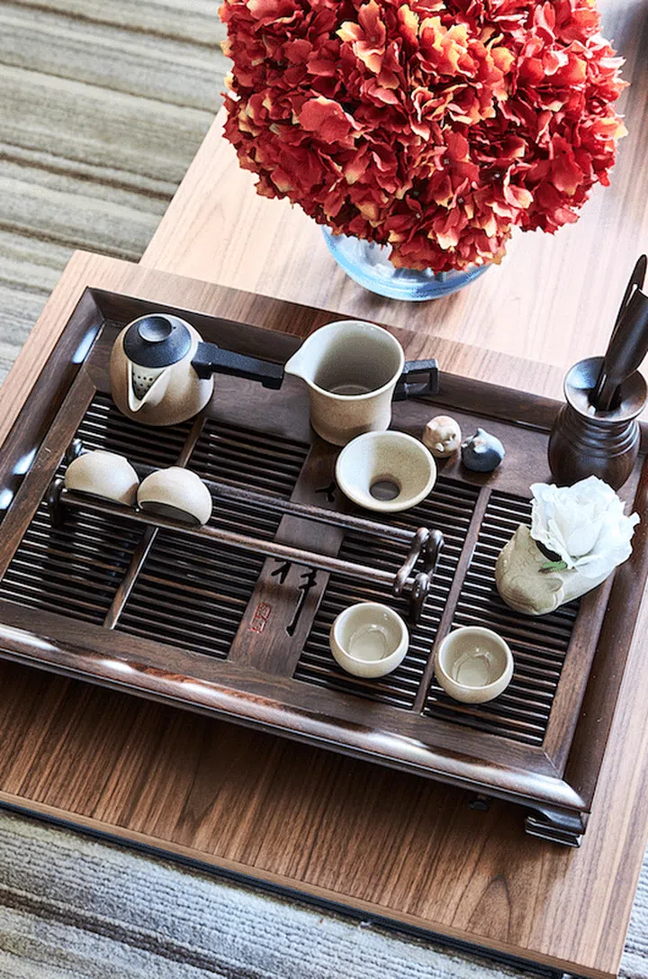 Accent pieces from Imagine SK66’s collection of home products — particularly those of the oriental style, as a nod to their stay in China — give the home a warm and stylish look.