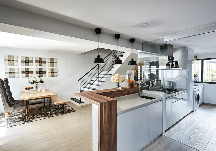 Jonathan Sim and Yvonne Cheong returned to Singapore after spending 12 years in China, and the maisonette they settled on was intended as a welcome-home gift to Yvonne. It was a surprise for Yvonne, who did not see the place until it was completed. Jonathan and their two sons, Jeric and Xavier, was house hunting when they were introduced to Tammy Tay of interior design firm Imagine SK66.