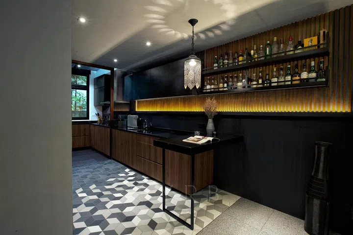 This cluster house at Gerald Drive has charming interiors that exude a luxe, moody ambience.