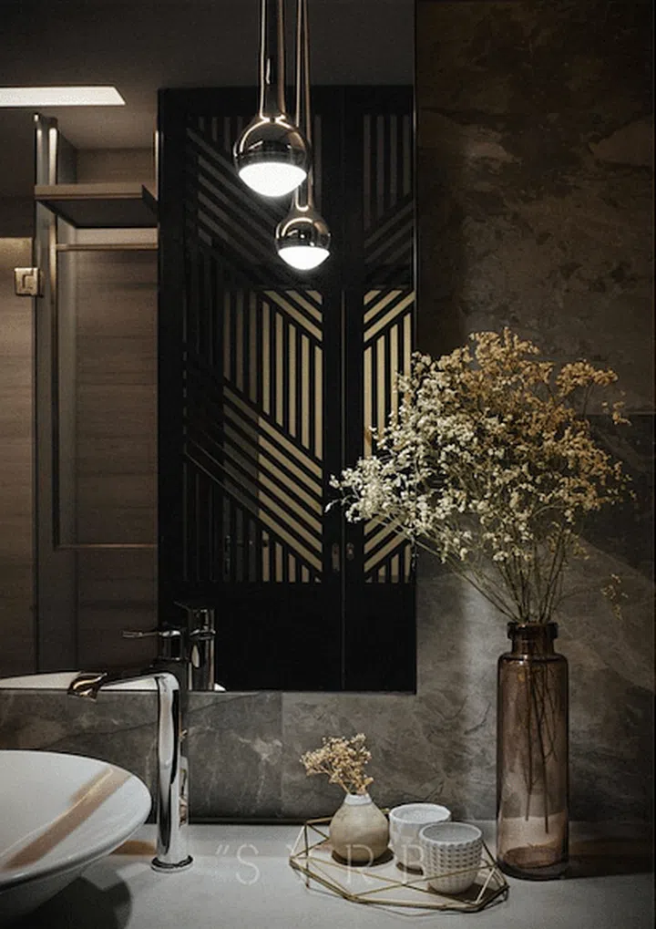The interior design team at SYRB chose a darker colour palette, with black and grey as the primary colours in the living, kitchen and bar areas.