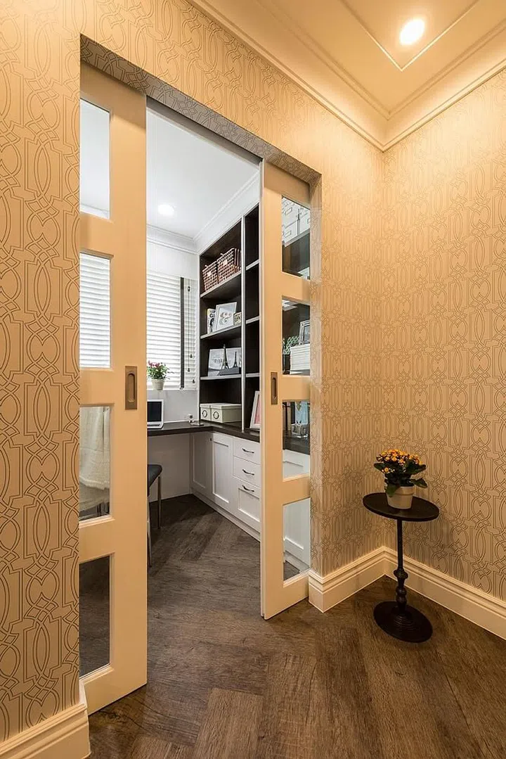 This thoughtful addition to the preppy style HDB demonstrates how modern homes can adapt to accommodate both work and leisure needs.