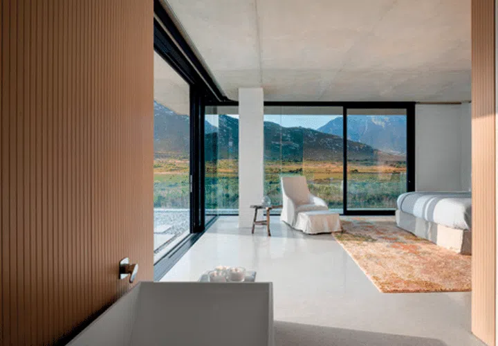 The neutral palette and modest furniture pieces in the bedrooms turn the focus outwards to the breathtaking views that are like ever-changing artworks.