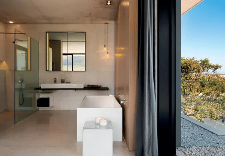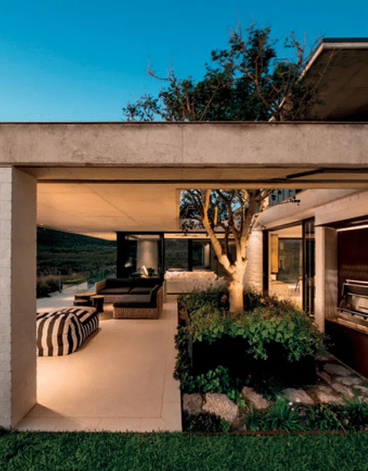 The vantage point of the house allows good access to the surrounding native fynbos and the landscaping of the home incorporates a lot of indigenous vegetation, including iconic South African trees.