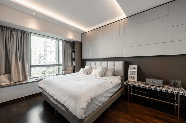 As for the unused space by several bay windows in the bedrooms, the designers converted those areas into comfortable settee spots with customised storage.
