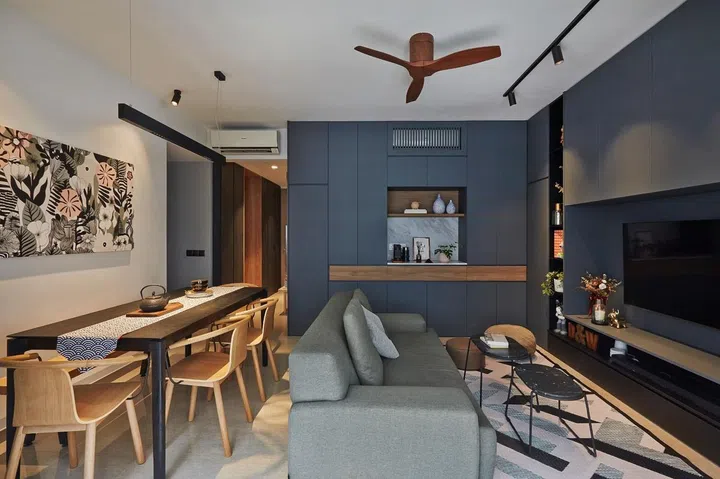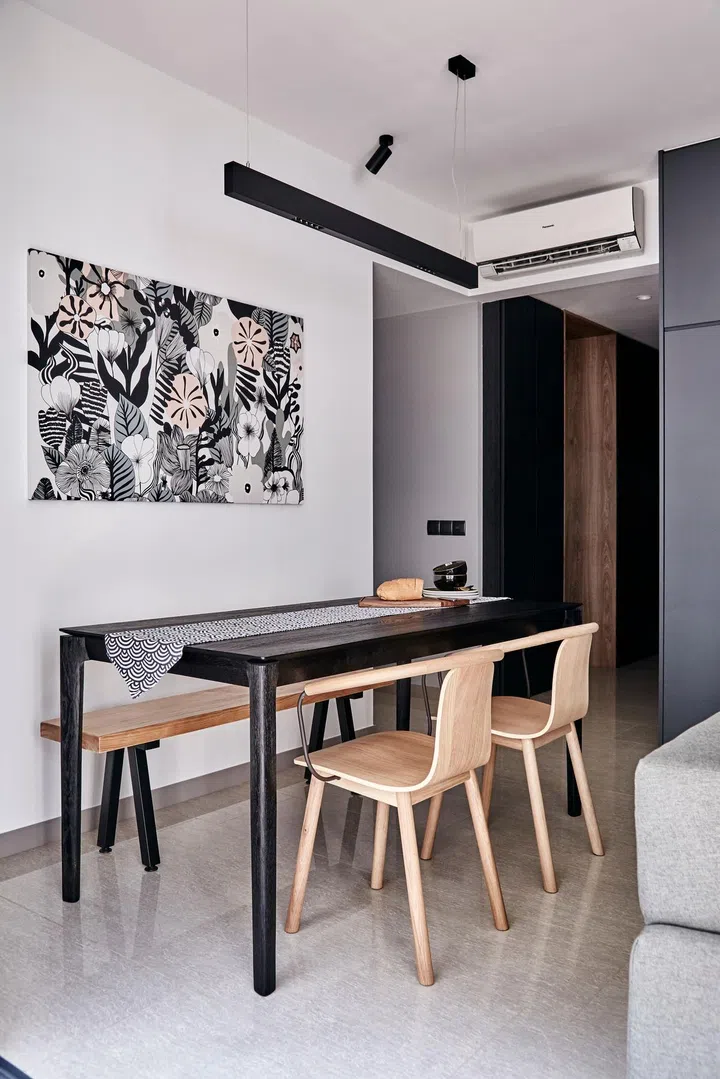 Typically, homeowners of smaller apartments would opt for white and bright interiors to visually expand the space. Domenica Tan and Goh Wei Hao, however, embraced their abode’s size with a darker palette.