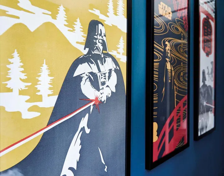The study is decorated with a Star Wars tenugui series, which the couple bought during their trip to Japan.