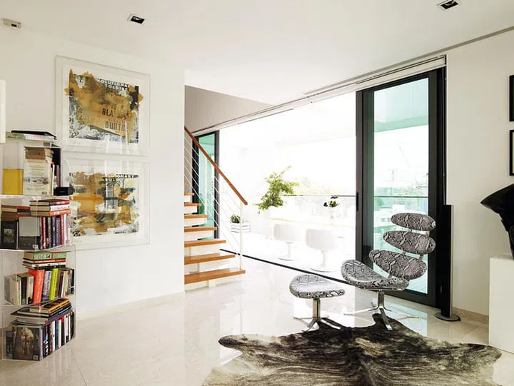 Painting the timber floorboards of the balcony white made it seem more like an extension to the living space.