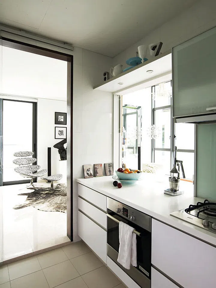 Designer Karina Zabihi is used to transforming stark white interiors into warm, welcoming homes. For her own abode, however — a 4-room rented penthouse apartment she shares with her Scottish husband — the English-Persian interior designer elected to keep it all-white.