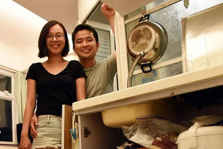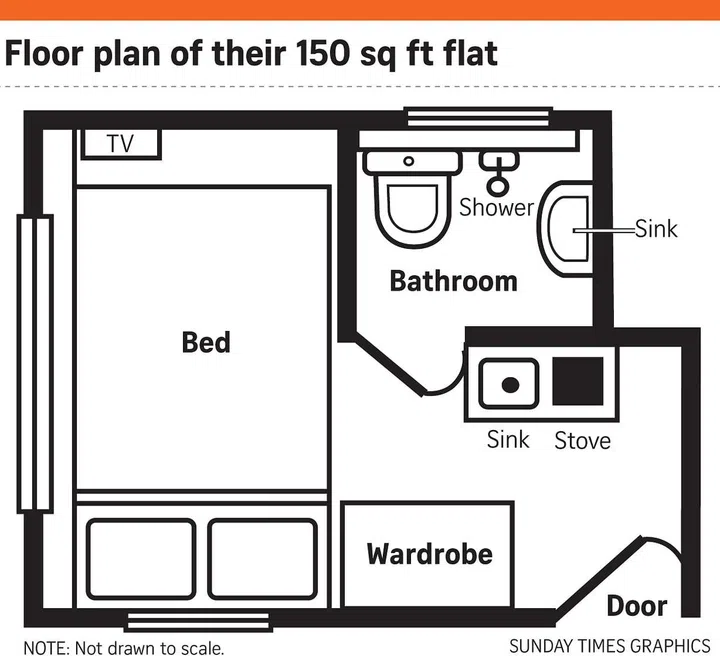 The bed frame also serves as a "dining table" whenever he has guests over for dinner, he said. The couple once shared a meal on their bed with three family members who visited them. Said Ms Tan: "My mum said, 'Are you crazy? (Are) you sure you want to stay in this room?'"
