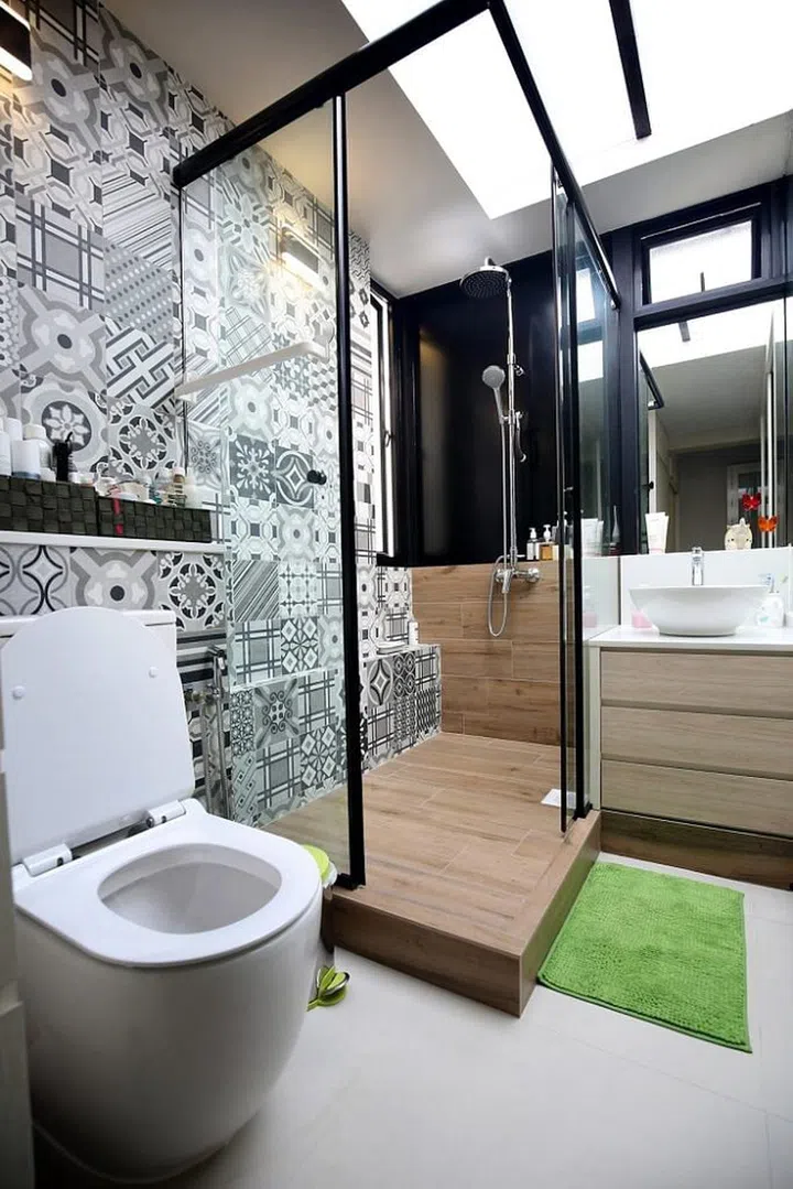 The tiles fitted in her bathroom initially gave Yi Fong a fright, as she thought they were too gawdy. However, she has developed a liking for these patterned tiles.