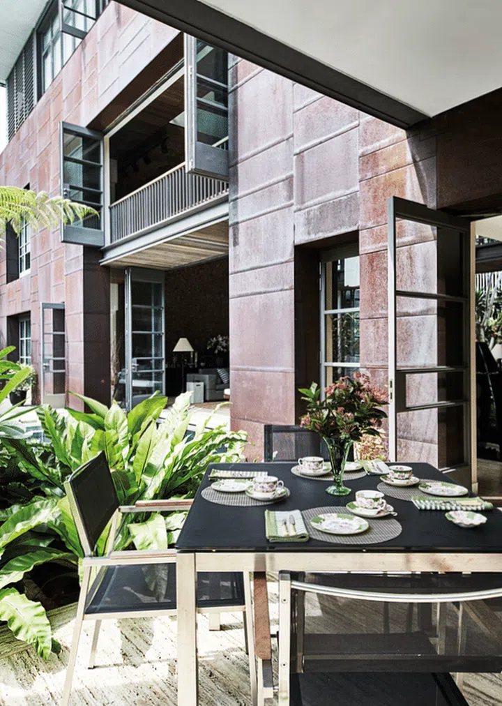 Taking inspiration from the site’s natural surroundings of lush greenery and unobstructed views of the Singapore skyline, he created an open-planned “tropical home” where boundaries between the indoors and outdoors are blurred.