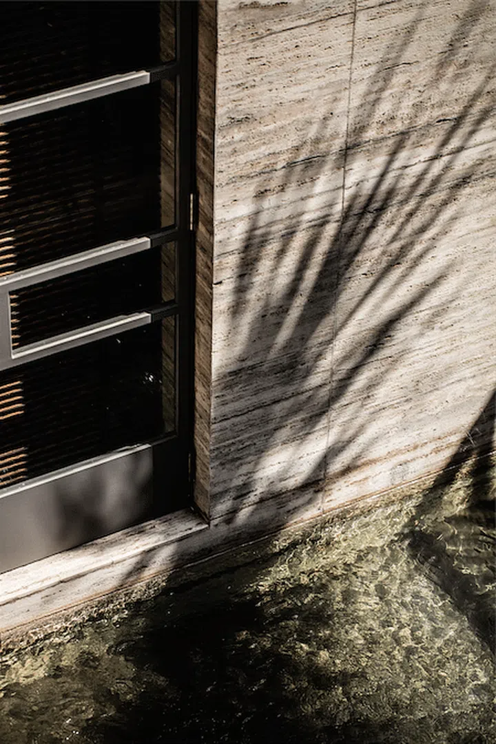 Plants cast shadows against the facade at different times of the day to create a constantly changing work of art.
