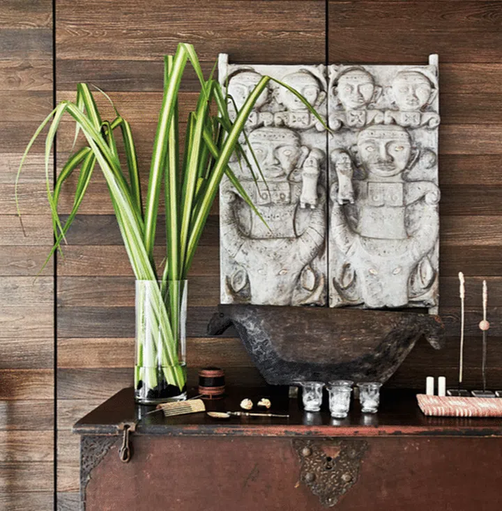 The homeowners’ collection of unique knick-knacks and souvenirs collected during their travels is displayed on various sideboards around the home.
