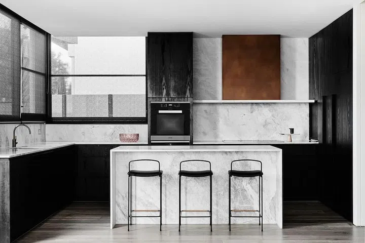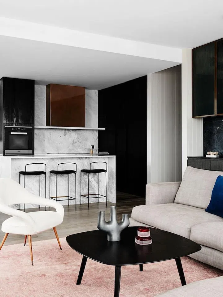 To create an understated glamorous home, interior design firm Golden took to a darker, moodier palette. This is quite unlike the coastal setting of this Melbourne home.