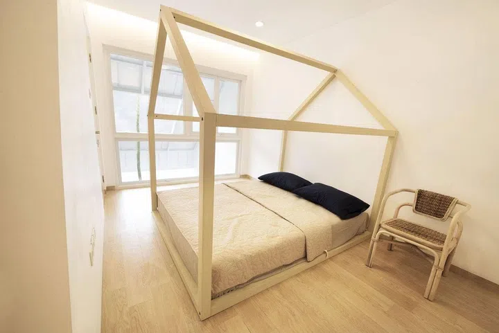That wasn’t an issue for this ingenious homeowner, who decided to save some money by building his own double-storey home at the top of an existing shophouse.