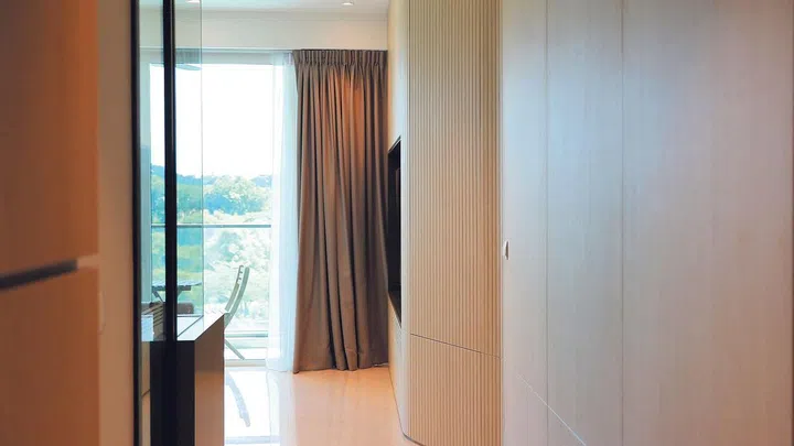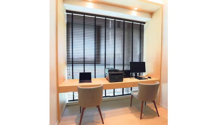 For the study, Mr Goh created a desk within a square wooden frame, to give the couple a more enclosed feeling when they are working there.