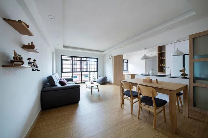The homeowners of this five-room BTO unit in Ang Mo Kio, a newlywed, tasked Eugene Lee from Shijin Design Consultancy to create a spacious and functional matrimonial home.