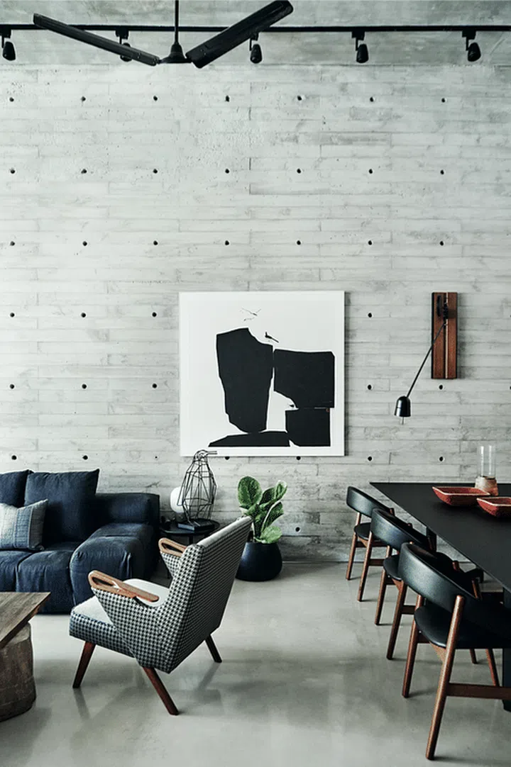 He also clad the walls on the first floor, as well as the stairwell and staircase, in concrete screed.