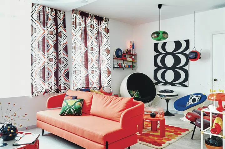 3) Bold colours and retro-style furnishings fill this three-bedroom condominium home in Sengkang