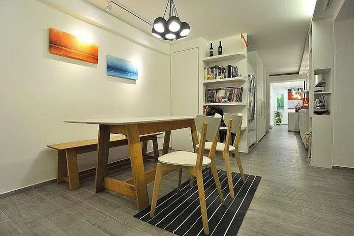 The clever use of space and extensive use of the colour white throughout this two-room, 59 sqm (635 sqf) HDB flat make it look spacious.