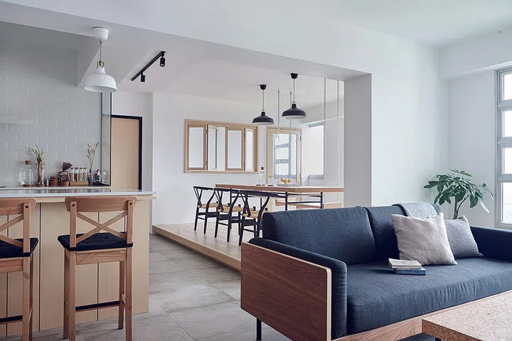 The design of this four-room BTO home in Sengkang shows how you can create so much space in a typical HDB apartment. Designer Don Lim of DB Studio decided to create a spacious common area by hacking down walls.