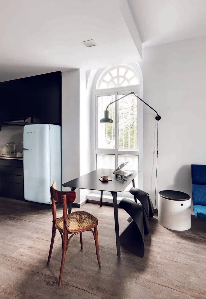 Despite its compact size, the home does not look claustrophobic because of the traditional shophouse windows that front the apartment, bringing in lots of sunlight.
