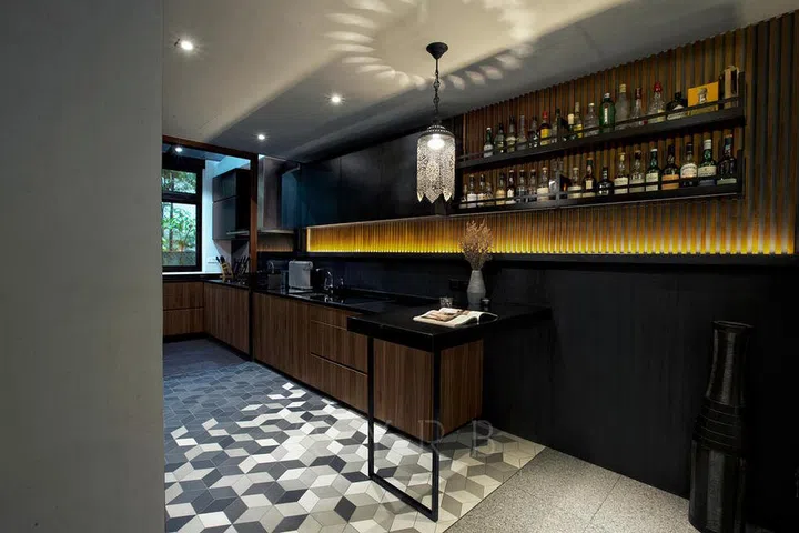 4) This dark coloured five-room HDB BTO home in Clementi has a gorgeous whisky bar!