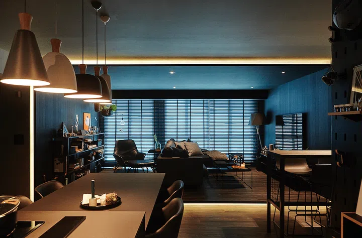For this HDB BTO home in Punggol designed by Zoey Tan, creative diretor of Carpenters, the interiors take on a dark colour palette and Scandinavian theme.