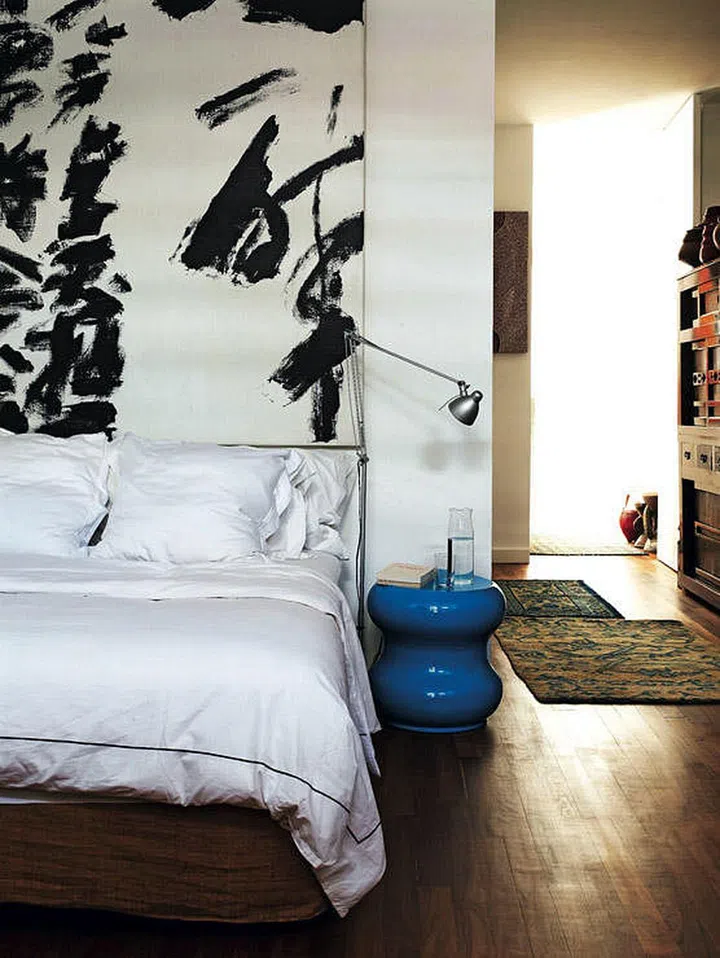 In the master bedroom, a large painting by Shanghainese painter Hong Zhu An hangs over the headboard.