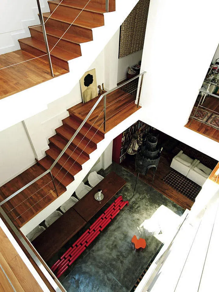 This view from the third floor stairwell shows how the homeowners had the interiors transformed into a modern white box with the help of Randy Chan of Zarch Collaboratives.