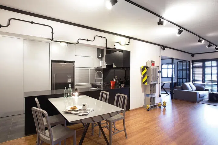 Home to another bachelor, this 1,227 sqf, five-room HDB flat in Sengkang replicates the loft style that the homeowner had always coveted with the help of Kelvin Teo of Space Sense Studio.